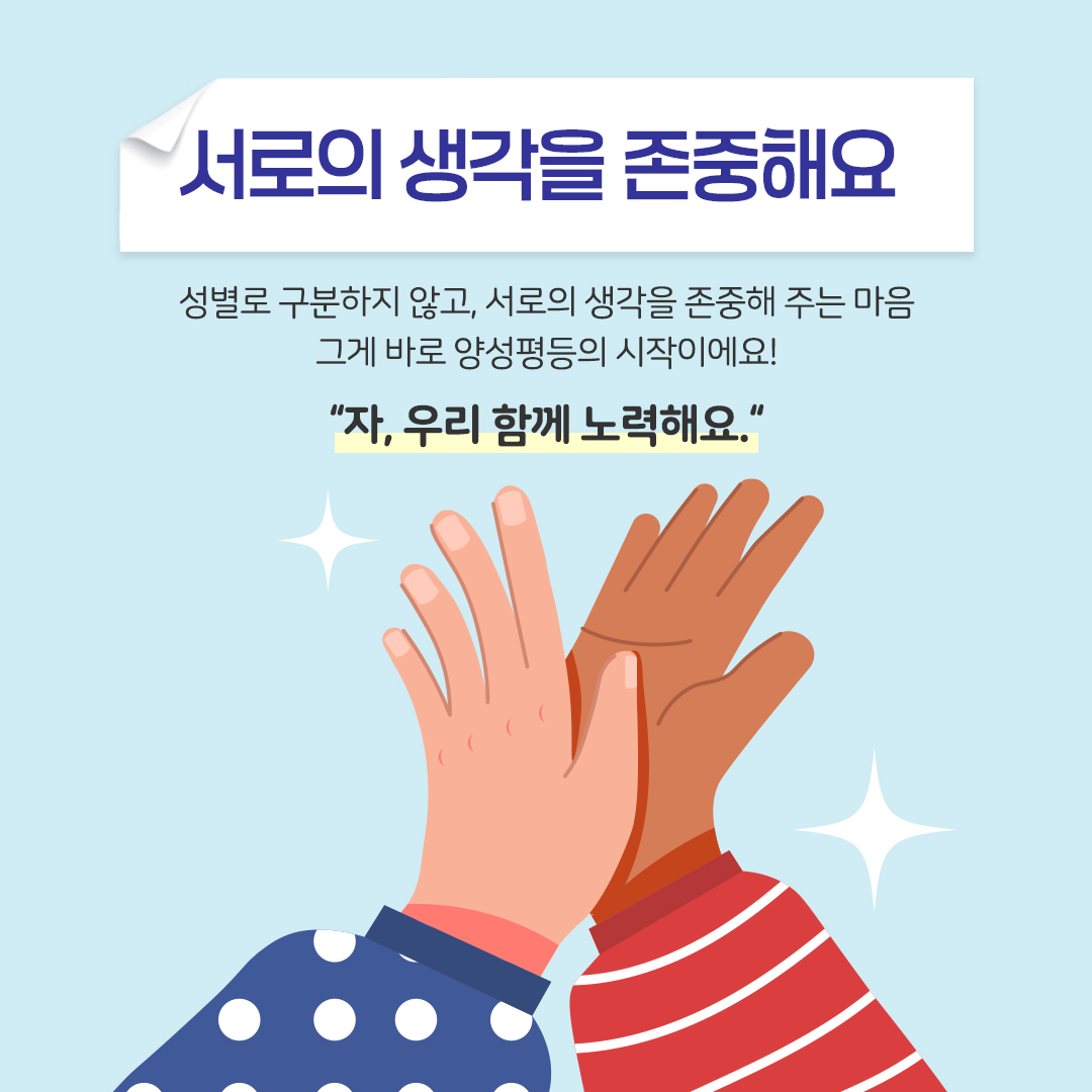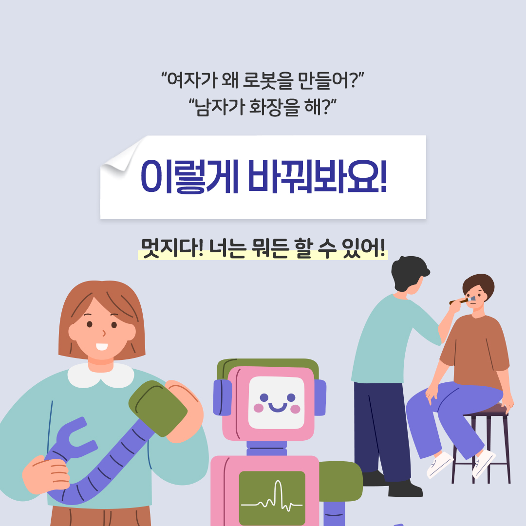성별에 관계없이 자신이 좋아하고 잘하는 일을 선택할 수 있다는 인식을 심어줄 수 있도록